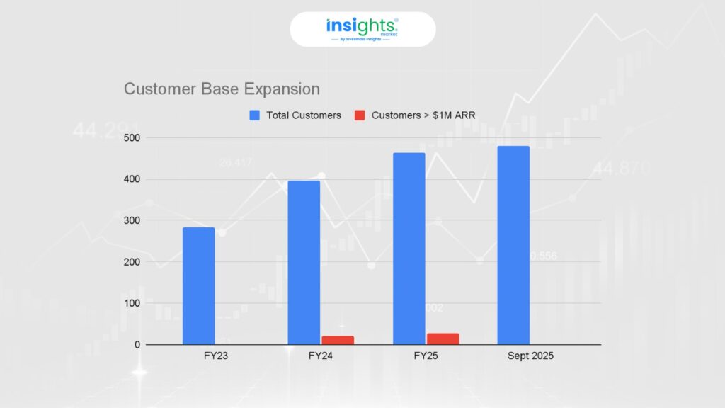 As of September 2025, Amagi served 481 customers, up from 283 in FY23, representing an increase of nearly 70% over two years. Alongside overall customer growth, the number of high-value customers generating more than $1 million in annual recurring revenue increased from 22 in FY24 to 28 in FY25, indicating improving customer quality and deeper enterprise adoption.