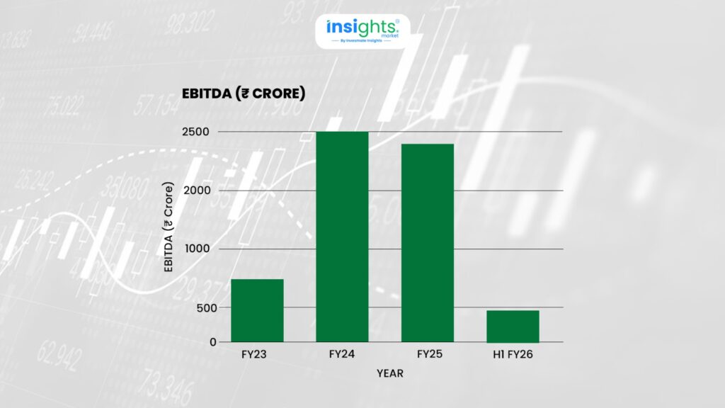 In FY25, EBITDA remained relatively strong at ₹2,356 crore, despite lower production. However, the picture changed dramatically in the first half of FY26.