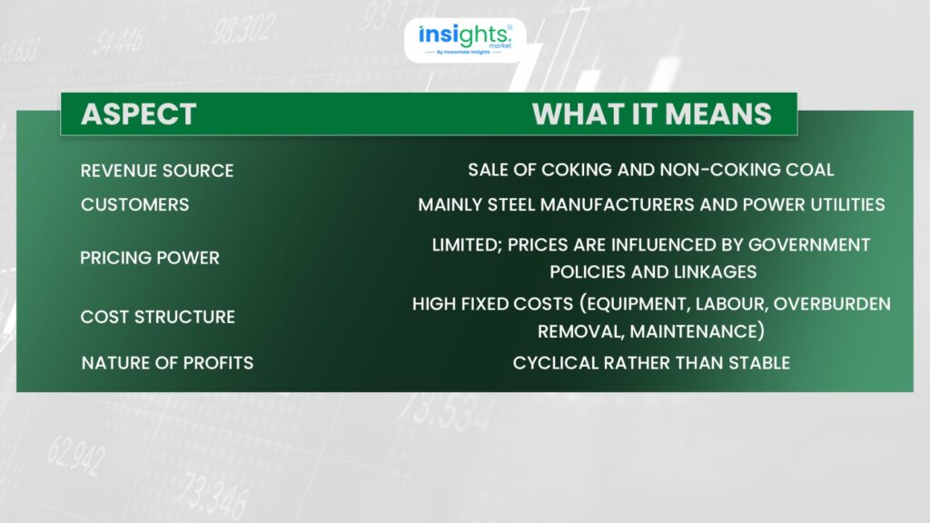 BCCL operates in a capital-intensive and cyclical business. Profits depend on factors such as steel demand, coal quality, washery output, mining conditions, and government pricing policies. Because of this, earnings can fluctuate significantly from year to year rather than grow smoothly.