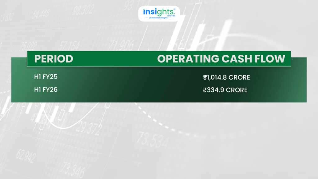 Cash flow shows whether profits are actually turning into cash. In H1 FY25, BCCL generated operating cash flow of ₹1,014.8 crore. In H1 FY26, this dropped sharply to ₹334.9 crore.