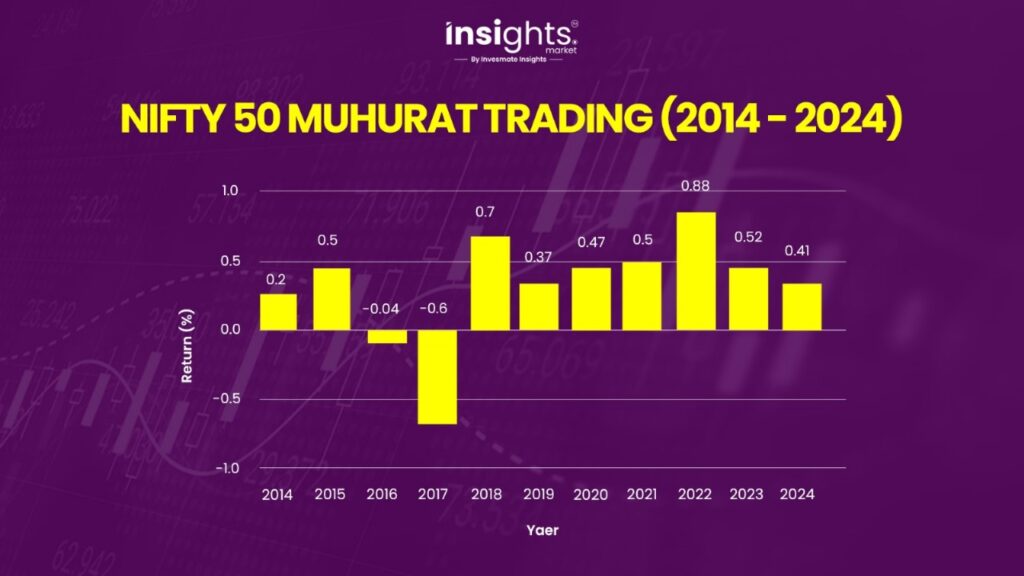 The historical performance of the Nifty 50 during Muhurat Trading sessions shows a positive bias in 9 out of 11 years.
