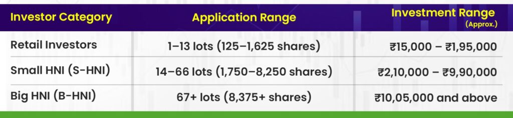 Retail investors can apply for a maximum of 13 lots (₹1,95,000). If you want to invest more, you’d need to qualify as an HNI investor.