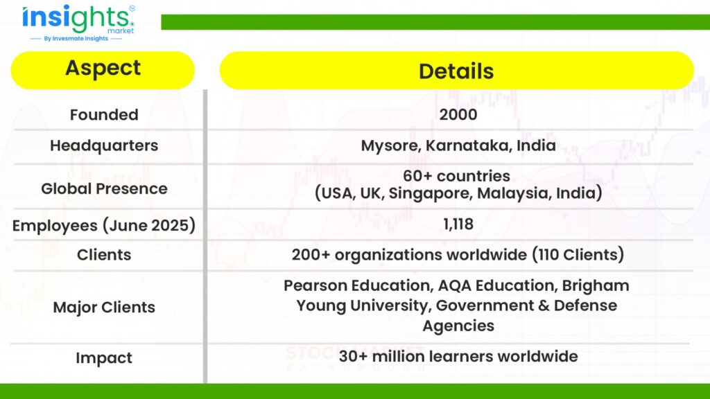 Excelsoft Technologies is a 25-year-old company focused on learning and assessment software, serving over 200 clients across 60+ countries. It has a strong financial position with low debt and a FY2025 profit margin of 14.87%. The company relies on a few large clients, including Pearson, and operates in a competitive education technology market.