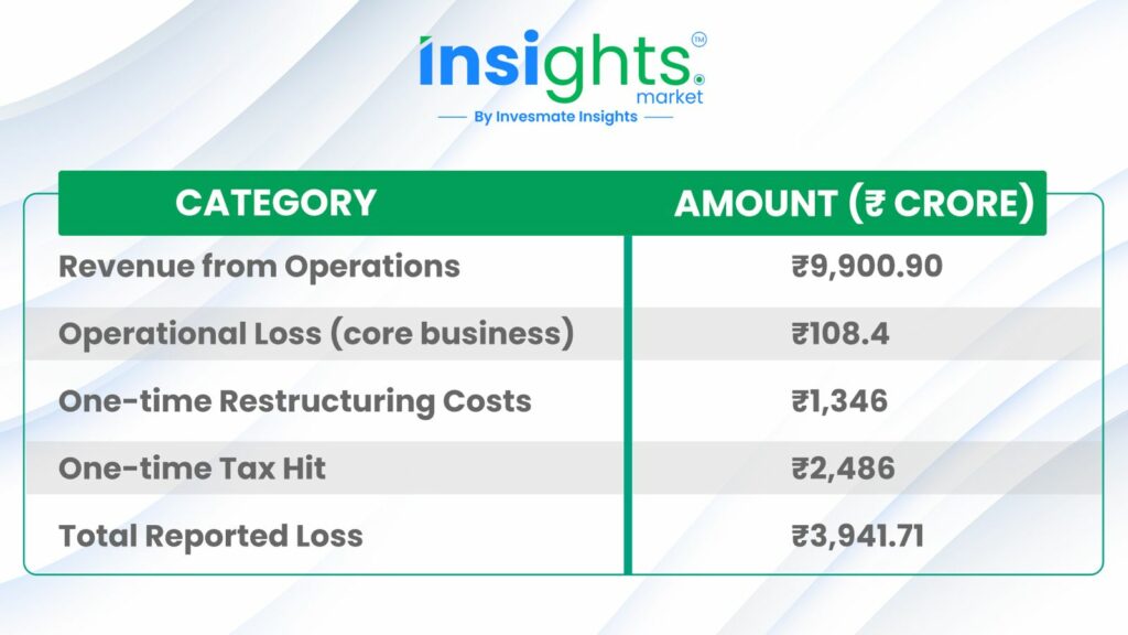 Real translation: Of ₹3,941.71 crore in reported loss, ₹3,833 crore came from one-time costs (restructuring and tax adjustments related to moving headquarters from the US to India). These won’t repeat.