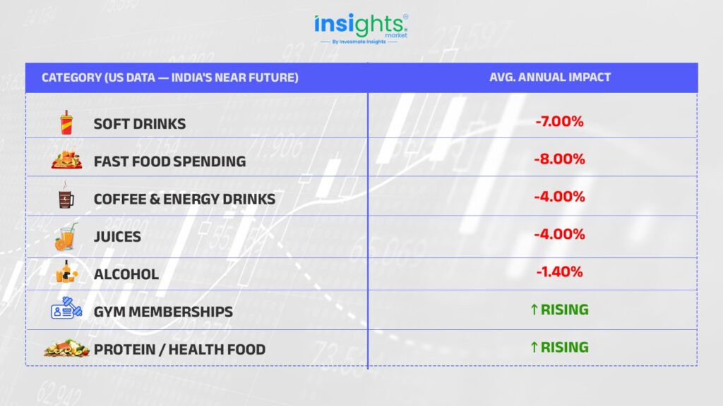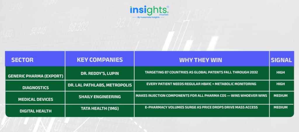 Think about what this means for India — 1.4 billion people, 90 million diabetics, a rapidly growing middle class — and a price barrier that just collapsed overnight. Consumption won’t disappear; it will upgrade. Protein foods, functional nutrition, gym memberships, diagnostics — all beneficiaries of the same trend.