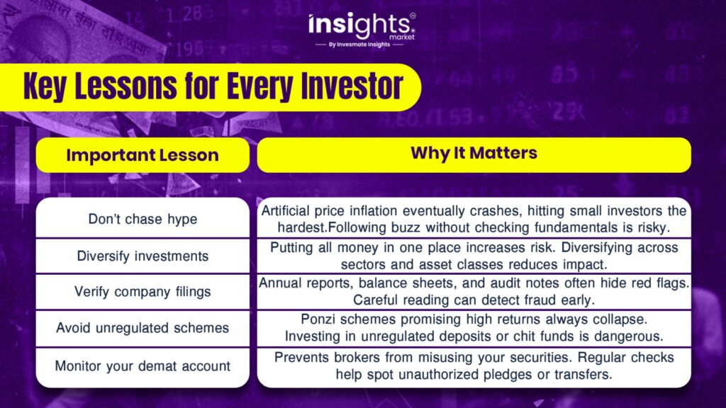 This proves how essential market discipline and regulatory vigilance are. But for investors, the biggest lesson is—don’t blindly follow hype or rumors. Always verify company fundamentals, diversify investments, and use only authentic, SEBI-registered channels.