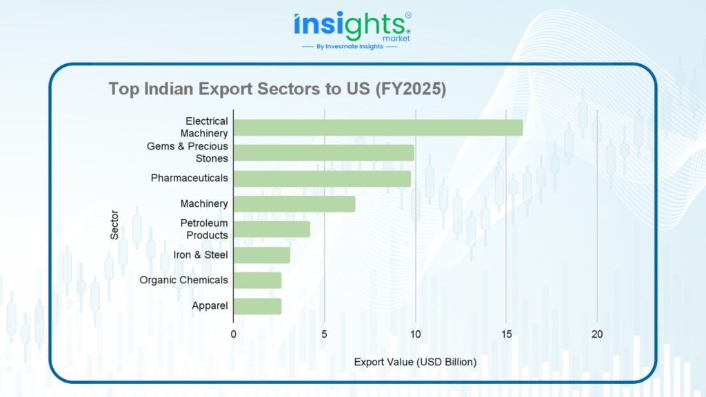Top 8 Indian Export Sectors to US (FY2025): Total Value $86.51 Billion